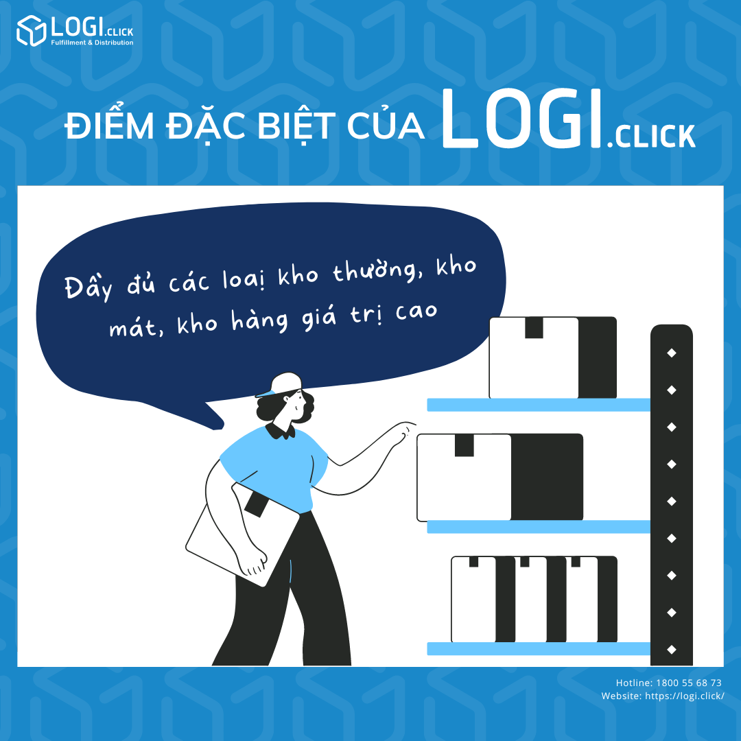 LOGI.click là mạng lưới dịch vụ hậu cần hỗ trợ thương mại điện tử với mạng lưới kho bãi rộng hơn 10.000 m2 tại trung tâm Hồ Chí Minh, Bình Dương, Hà Nội và hệ thống phần mềm quản lý hiện đại cùng đội ngũ nhân viên hơn 30 năm kinh nghiệm trong ngành logistics, cung cấp nhiều giải pháp Fulfillment và phân phối, giúp người dùng triển khai các chiến dịch bán hàng theo cách đơn giản và tiết kiệm nhất.